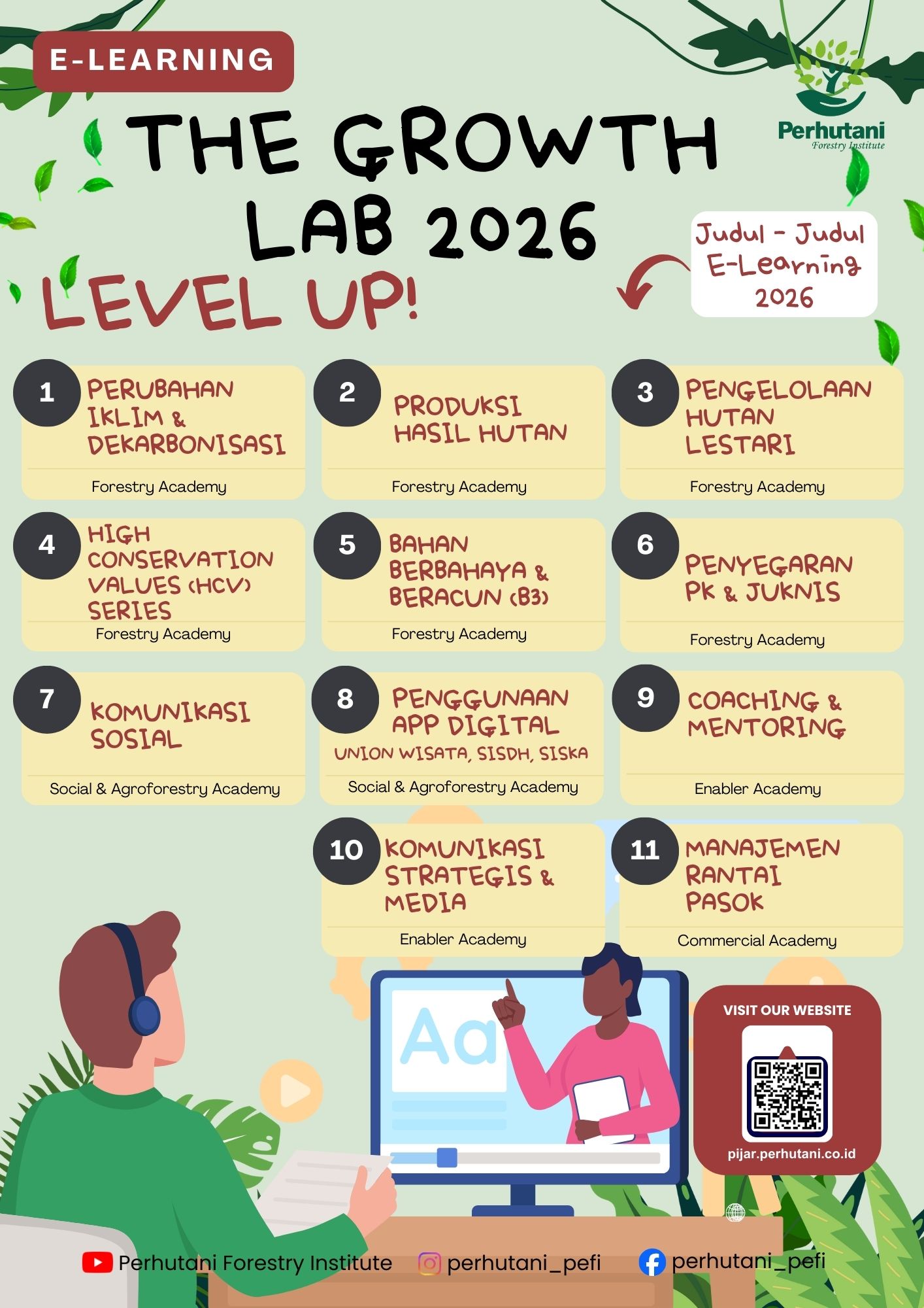 Pusat pengembangan kapabilitas yang berfokus pada peningkatan kompetensi SDM melalui metode pembelajaran terpadu, bertujuan untuk mencetak tenaga profesional yang adaptif dan inovatif guna mendukung keberlanjutan industri kehutanan di masa depan.